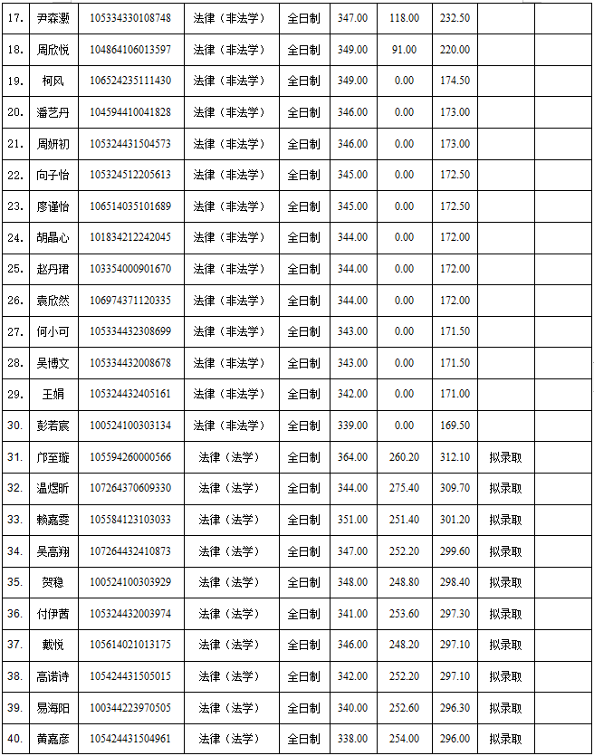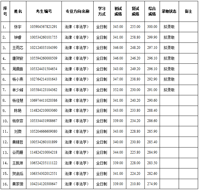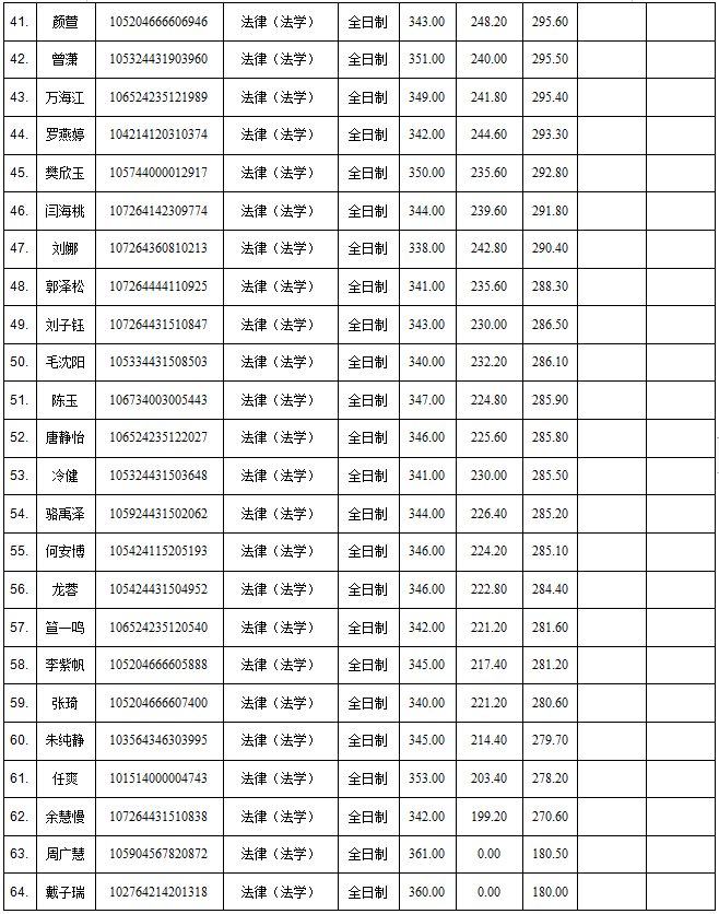 根据《湖南工商大学法学院2024年硕士研究生复试录取工作方案》,经研究生招生工作小组组织复试,现公示湖南工商大学法学院2024年硕士研究生调剂复试结果,公示期为2024年4月15日—4月17日,公示期内如有异议,请向法学院研究生办公室反映。(联系电话:0731-88688300)